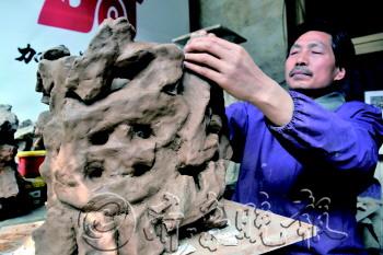 文/本报记者 李超 片/本报通讯员 张红霞 本报记者 王鸿哲 18年前,他双眼意外失明,18年后,他用双手捏出了一片天。失明前他致力于画油画,失明后他走上泥塑创作之路。他说,艺术不仅只靠眼睛看,用心感知的艺术才更真切,他看不见,他的心却无限宽。 1. 立志油画创作却突然失明 1959年,耿加勇出生在淄博一个普通家庭,从小喜欢画画,1984年和1988年先后在山东艺术学院美术系和中国美术学院油画系学习。“从那时起我就立志油画创作,想要做出一番成就,那个时候整天在画画,没别的就是喜欢。” 他1976年下乡,1978年任职于淄博市电影有限公司,专职绘制电影广告,从事着自己喜欢的绘画工作。谁也没有想到,由于长期画画造成眼睛疲劳,1995年他的眼睛意外失明。 “对画画的人来说,眼睛失明了就等于失去了一切,因为我那时认为艺术就是眼睛看到的艺术,那时真不知道该往哪儿走,整个人颓废了。” 浑浑噩噩地过了数月后,耿加勇觉得不能再这样下去了,眼睛虽然看不见了,但艺术是自己永远的追求,不能放弃了。“我自己也想通了,艺术除了用眼睛看,更重要的是用心去体会,用手去感触。” 2. 用双手 捏出一片天 双眼失明后,耿加勇走上了泥塑的创作之路。“以前习惯了用眼睛去观赏,刚开始还适应只能用手去创作,做出来的泥塑不像样。”当时,耿加勇的妻子给了他很多的支持和鼓励,由于耿加勇看不到,妻子基本上是拿着他的手一点一点的捏泥。 后来,耿加勇便能自己灵活自如地创作了,他说每块泥都是有灵性的,他可以用心灵和泥土对话,泥土该往哪放他都能体会到。 如今耿加勇一家三口住在一套不足70平方米的房子里,客厅、卧室全是他的泥塑作品。为了烧制泥塑,几年前他买了一个烧制炉,亲自烧制泥塑。由于看不见,对于火候的掌握全靠耿加勇用耳朵、手指去感觉。 经过几年不懈的努力,耿加勇在泥塑艺术上有了些成就。他成为山东省陶艺家协会会员,中国陶瓷工业协会会员,山东省残疾人自强模范,还获得了淄博德艺双馨中青年文艺家,泥塑作品也多次获奖。 耿加勇说,虽然泥塑是看着比较粗糙的艺术,但是每块泥都有泥性,泥太软会坍塌,太硬会产生裂缝。他说这些泥塑都是他的孩子,他是“看着”他们一点点长大的,所以对他们倍加珍惜。 耿加勇说,以前虽然痴迷于艺术,但是还不能真正理解,现在失明了,反而对艺术有了更深的认识。他说,现在才知道艺术是相通的,艺术最终归宿不是让人欣赏,而是让人的心灵得到净化。