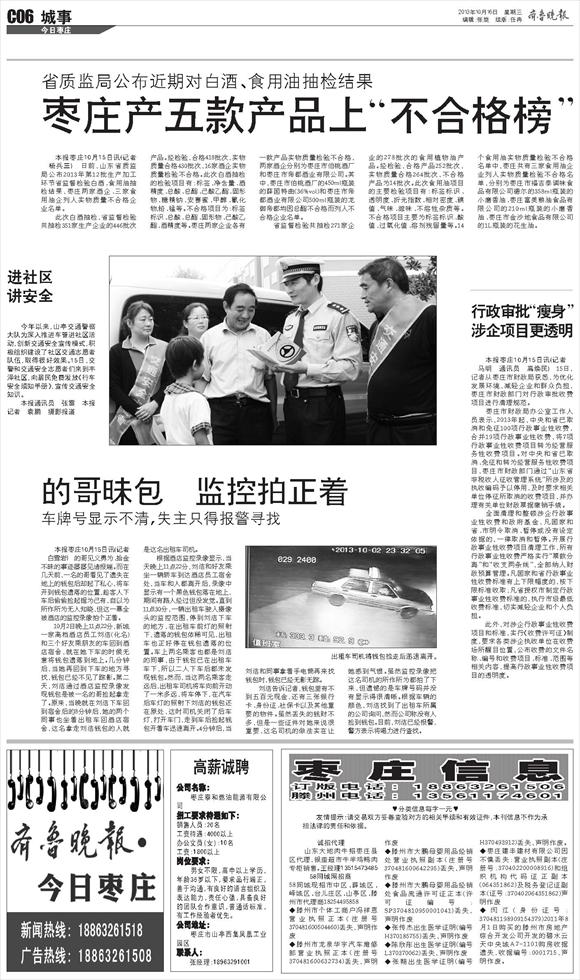 枣庄产五款产品上“不合格榜”