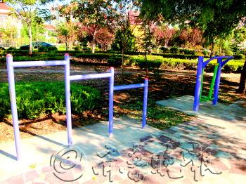 | 文昌山庄气派的大门内掩藏着两个物业之争。 |  | 民泰物业设立了新健身设施。 |