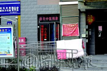 | ①在茗筑美嘉小区,一单元门口开出一个中医推拿的“门头”。 |  | ②新东方花园小区“住改商”多在楼房的一层。 |  | ③新东方花园小区有不少“住改商”商户。 |
