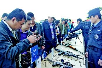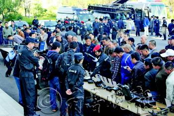 | 参加活动的市民对着展出的枪支拍照。 见习记者 郭凯 摄 |  | “天网”工程实现了实时监测。 见习记者 王富军 摄 |  | 市民参观特警支队展出的装备。 见习记者 郭凯 摄 |
