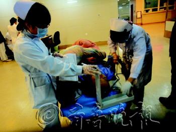 | 护士正在检查张先生的伤势。(图片由目击者提供) |