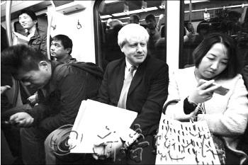 | ▲10月15日,伦敦市长鲍里斯·约翰逊体验乘坐北京地铁一号线,被身旁的女乘客“忽视”。 |