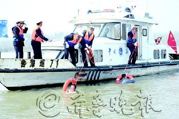 本报济宁10月20日讯(记者 庄子帆 通讯员 石国安) 19日上午,在微山岛河口,一辆货船与车渡船相撞致车渡船起火,并有人员落水,救援人员立即展开救援行动,一场紧张的水上应急救援综合演练在微山湖水域上演。 19日上午10点15分左右,一艘载着6名乘客车的渡船与一艘快速行驶的货船相撞,渡船机舱当场着火,船上6人也落入水中。渡船上船员立即点燃可燃物,释放烟雾弹,船员拿灭火器自救,旅客呼救。情急之下渡船上的人员跳水,呼救,两船船员抛救生圈开始自救,同时利用船载甚高频请求救助…… 此次水上交通应急救援综合演练贯穿了救助、消防、打捞、清污等多个环节,共投入各类型船舶20余艘,参演人员近百余名。“随着经济的发展,辖区水运市场逐渐繁荣,但水上安全隐患也逐年增加,为保证人民生命财产安全,设立韩庄、微山、留庄、鲁桥四个搜救基地,配备了相应的救援设备和器材,为辖区搜寻救助提供了保障。”济宁市港航局的相关负责人说,通过应急演练能够进一步在实践中检验和完善应急救援预案,积累实战经验,锻炼应急队伍。