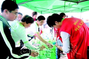 健康跑活动开始之前,本报蚂蚁义工团菏泽靓源美容美发化妆摄影学校的18名义工就赶到了现场,不仅参加健康跑,还为参加健康跑的市民提供服务。