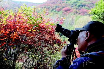 18日,拍客一行13人前往济南红叶谷景区拍摄红叶,来到景区,看到漫山的红叶,拍客们纷纷拿出相机进行拍摄。据了解,10月的红叶谷真正是万山红遍,游人穿行其中,可以领略到“霜叶红于二月花”的美丽景色。