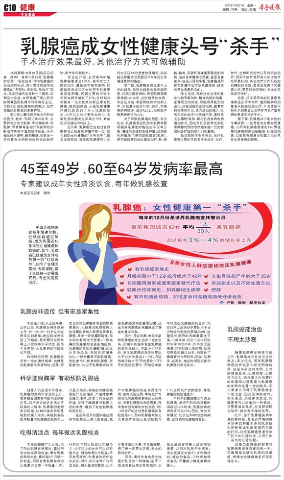 乳腺癌成女性健康头号“杀手”