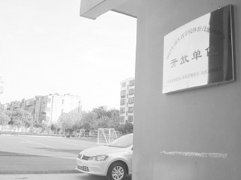 泰安这所学校挂着“开放单位”的牌子,却未对外开放。 本报记者 白雪 摄