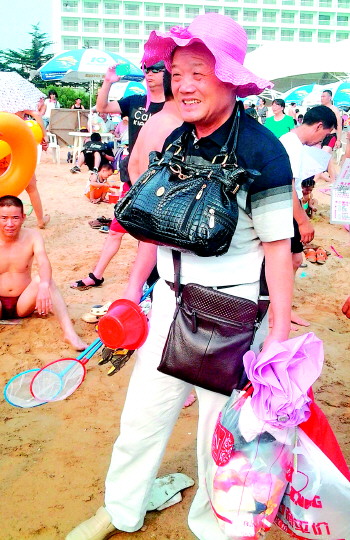 自述:孩子们都下海玩耍去了,老人在岸上帮忙看管东西。