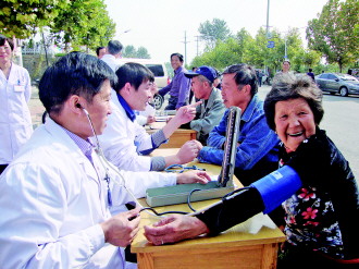 17日,威海光华医院走进经区崮山镇,为居民免费检查血压、血糖等,并现场答疑。当日,该医院内外科、妇科、耳鼻喉科等科室九位专家到场。据悉,崮山镇卫生所为威海光华医院对口支援单位,该医院定期对该镇卫生所进行帮扶。