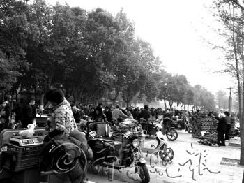 | 百花公园北侧形成的早市。 张林 摄 |