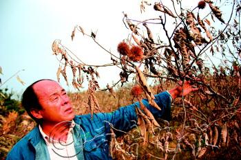 本报热线6610123消息(记者 石磊) 20日,牟平区王格庄镇大河东村王先生说,因疑似使用了“有问题”的洋品牌杀虫剂,他家150亩板栗树成了虫窝,果树大面积减产枯死,造成20万元损失。 21日中午,记者赶到大河东村。王先生告诉记者,16年前他承包了该村东山大片山地,用其中150亩种植栗子树。王先生介绍,板栗树叶黄枝枯,果子泛黄,个儿头与乒乓球大小无异。凑近果树发现,枝干上附着密密麻麻的黄绿色“小圆点”。“这些‘小圆点’都是虫,就是它们把树给害死了。”王先生说,这种不起眼的小虫是蚧壳虫,附着在枝干上汲取养分。 王先生粗略统计了一下,15000多棵板栗树全受虫灾,其中约4000棵树枯死,打下来的板栗总重6000多斤,绝大多数都是不起眼的小果。他粗略核算称,这次损失20多万元。 王先生思来想去,最终将目标锁定在一种名叫“亩旺特”的杀虫剂上。他回忆今年7月一天,相识多年的农化产品经销商柳先生,向他推荐了这种德国拜耳公司研发的杀虫剂。“普通的杀虫剂每瓶10多元,这种每瓶100元。”王先生分两次共购入10多瓶国外产杀虫剂,可喷洒后虫子却没有被杀死。 “打药的日期晚了点,但这不是导致果树减产、枯死的主因。”王先生对药效产生怀疑。 王先生望着枯死的板栗树,欲哭无泪。 本报记者 石磊 摄 经销商 三次调查两次取样本,还在分析当中 经销商柳先生告诉记者,王先生家板栗树出现异样后,他联系了上一级经销商和厂家代表,他们先后三次到现场查看,其中两次取样回去分析。“他家树的情况是由蚧壳虫引起的。”柳先生说现在厂家和专家正在研究这个事情,之前厂家在乳山等地做过试验,该杀虫剂对板栗树没有影响。 “虽然是新药,但推广之前已在胶东地区做了试验,大樱桃树和板栗树的效果都不错。”牟平经销商宋先生说,“亩旺特”药本身不可能出问题。“今年7月涝雨集中,8月气候又比较干燥,当地很多苹果树都死了。”此外,宋先生猜测王先生使用方式方法上或许存在问题。 拜耳作物科学(中国)有限公司一名技术支持人员表示,“亩旺特”喷洒时不仅要打枝干,还要对树叶喷洒,怀疑是王先生喷洒时只针对枝干;其次,5月份使用这种杀虫剂效果最佳,而王先生是在7月才用药。 本报记者 石磊