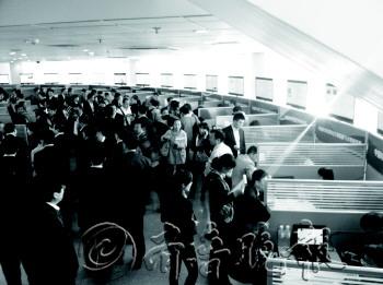 | 21日,2013“蓝洽会”现场挤满了参与洽谈的企业和人才。 曹思扬 摄 |