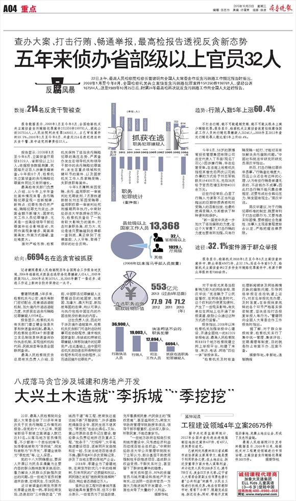 五年来侦办省部级以上官员32人