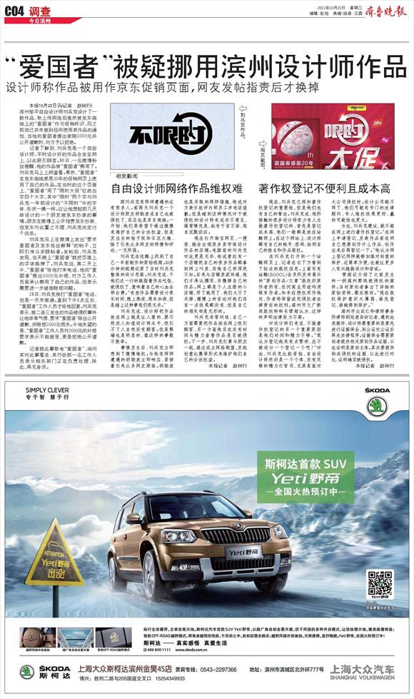 “爱国者”被疑挪用滨州设计师作品