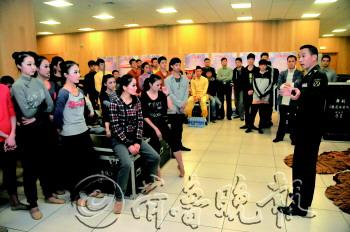 走进幕后 总政歌舞团为烟台人民带来的精彩舞剧《铁道游击队》。实习生 吕奇 摄 台上的“万金油” 可真不简单 上台前,导演杨笑阳(右一)把演员叫到一起,嘱咐演出过程中要注意的事项。实习生 吕奇 摄 “十艺节”在烟台 本报记者 陈莹
