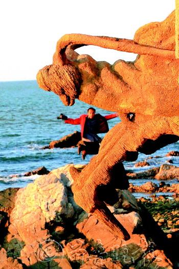 作品描述:大呼着跳起来,被镜头定格在龙嘴的位置,太巧了。
