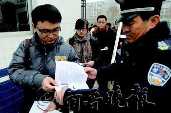 ▲工作人员正在核实“国考”考生身份(资料片)。                  本报记者 王鑫 摄