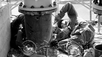 | 24日,工作人员正在城西换热站安装供热设备。