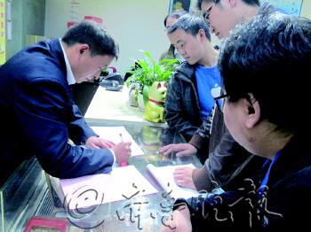 | 山东新闻大厦一个体经营户填写普查信息。本报记者 肖龙凤 摄 |