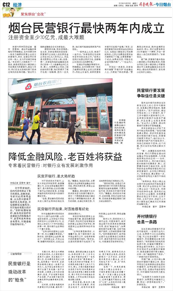 烟台民营银行最快两年内成立