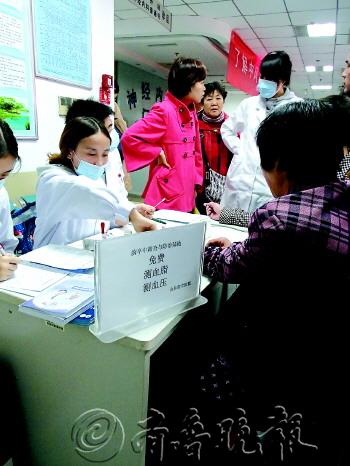 | 义诊当天前来咨询的中老年人居多,但脑卒中已瞄上了青少年。 本报记者 李钢 摄 |