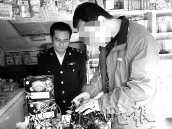 本报济宁10月29日讯(记者 姬生辉 见习记者 孟杰) 29日,本报C04版刊发了一种名为“魔烟”的爽果粉在济宁校园周边热卖的消息。稿件见报后,本报记者联合济宁市工商局市中区分局古槐工商所突查辖区内多家小商店,没收了部分“魔烟”产品。工商部门表示,下一步将加强监管力度,保障校园周边食品安全流通。 29日上午9点30分,本报记者和工商执法人员来到霍家街小学总校北侧的一商店。在商店的陈列柜上,记者看到了两大盒“魔烟”。“这是一种爽果粉,只是起了一个刺激的名字,没有什么危害啊。”店主说。 工商执法人员表示,该产品对中小学生身体和心理带有潜在的隐患,没收了店内所存的三大盒产品,并对该店主进行了口头教育。 在一天门街中段东侧的一家文具店内,工商执法人员也发现了“魔烟”,并依法全部没收。 “这些小食品多为油炸和高糖高脂肪产品,孩子们食用后,虽然短时间内不会出现问题,但对身体的成长会构成潜在的危害。”济宁市质监局食品实验室高级工程师段苏然说,QS标识只是质监部门审核企业是否具备生产合格产品能力的最低门槛,只是一个准入标准。一些生产企业为了节约成本,不排除偷工减料或使用劣质食品原料的可能。 “下一步,我们将加强查处和监管力度,杜绝类似的小零食在市面流通销售,保障学校周边的食品安全。”古槐工商所所长王勇说。