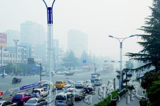 | 29日一大早,市中区就笼罩在一片“雾蒙蒙”当中,空气能见度较差。 本报记者 赵艳虹 摄 |