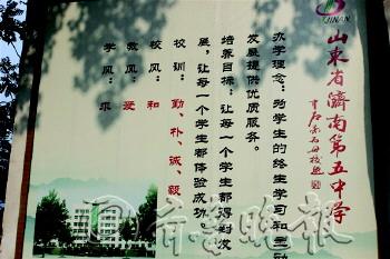 济南五中这所百年老校,历经几代人的奋斗与追求,以鲜明的办学特色、独特的育人风格和优异的教育教学成绩而享誉社会。特别是近几年来深入落实科学发展观,坚持以人为本、德育领先、全面育人的总体工作原则。在激烈的办学水平竞争中,率先将ISO9000国际质量管理体系引进学校管理,使学校管理变得科学、规范、高效。使“为学生的终生学习和主动发展提供优质服务”的办学理念,在五中有了坚实的落脚点。