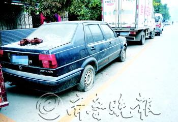 | 这辆轿车俨然成了“晾鞋架”。本报记者 李岩松 摄 |