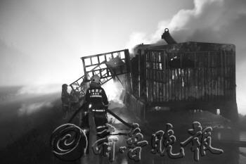 10月28日22时许,京台高速德州服务区南200米北京方向一辆满载空气压缩机的货车起火。119消防指挥中心先后调集3个中队、7部消防车到场,救援五个小时后,凌晨3点,大火才被扑灭。 (线索提供者 杨女士 奖励30元) 本报记者 孙婷婷 摄
