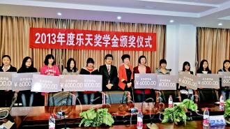 本报10月30日讯(记者 王帅) 优秀学生引来企业发奖。10月30日,第二届“乐天百货奖学金”颁发仪式在山大(威海)举行。来自山东大学(威海)的10名优秀学子获得由乐天百货提供的6万元“乐天百货奖学金”。这是乐天百货继去年在山大(威海)颁发奖学金以来持续进行的公益活动。 当天,乐天百货威海店总经理张翠丽、企划部部长金秀圭以及山东大学(威海)的相关负责人参加了仪式。仪式上,乐天百货威海店总经理张翠丽对“乐天百货奖学金”的获得者们表示祝贺。张翠丽说,乐天百货威海店设立“乐天百货奖学金”,希望能激励和帮助到积极进取的莘莘学子。乐天百货愿意为威海的教育事业贡献一份力量,希望莘莘学子积极进取,乐天百货欢迎高学历、高能力人才的加盟,将向有志学子提供展示自我的舞台。 仪式上,山大(威海)商学院2010级的学生姜奕凡等十名优秀学子每人领到了6000元的奖学金。“在我看来,奖学金是千金难买的一份激励。乐天奖学金的设立,带给我们的不仅仅是物质上的帮助,更重要的是一种精神财富。这是对我们付出努力的一种肯定。感谢爱心企业,让我们在前进的道路上多了一份鞭策的力量。”接过奖学金,姜奕凡很激动。而她准备将这份奖学金用作读研深造的学费,继续发愤图强。 据了解,在大学中设立奖学金,已经是乐天集团的助学传统。乐天百货隶属韩国流通业最大企业、世界500强之一的韩国乐天集团,是亚洲排名居首的百货公司。 自入驻中国以来,其一直积极参与社会公益事业。作为乐天集团在山东的首家全资高端百货店,乐天百货入驻威海吸引了诸多目光。乐天百货威海店同样也以高度的责任心全心全意回报威海消费者。今年,乐天百货威海店已捐助50万元用于资助环翠区教育事业的发展,还组织进行了拯救美丽海滩、定期捐助福利院、敬老院,组织公益献血等公益活动。 张翠丽表示,乐天百货还将持续进行回馈社会、救济社会的各种公益活动。今后,乐天百货威海店将每年为山大威海分校成绩优异、德才兼备的优秀学生颁发奖学金,并希望企业和高校学子有更深一步的交流,助力学生努力学习,拓展专业视野。