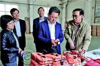11月1日起,今年威海市的应急救援包共计2万套将开始摇号及发放。图为28日下午,市人防办领导在威高集团某仓库检查应急救援包。