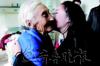奶奶别怕 30日,一名志愿者拥抱88岁“阳光老人”妮娜,为她加油。当日,许多爱心人士到山铝医院看望“阳光老人”,给她送去温暖。今天下午老人将进行白内障手术,山铝医院两位眼科专家为老人主刀。看到有这么多好心人为自己加油鼓劲,老人表示“一点也不害怕”。 本报记者 姜文洁 摄影报道