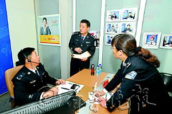 | 市中公安分局局长赵新接热线。本报记者 左庆 摄 |  | 接到市民电话,现场布置任务。本报记者 左庆 摄 |