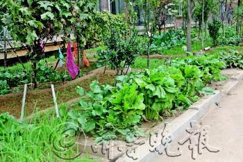 | 贤文花园小区公共绿地种上了菜。 |