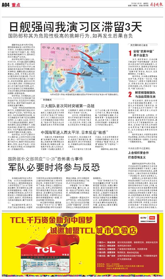 日舰强闯我演习区滞留3天