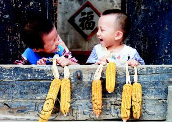 丰收之季,玉米金黄,瓜果飘香,孩子的脸上写满了笑容。你一言我一语,诉说着秋天的童话。 摄影 孙守利