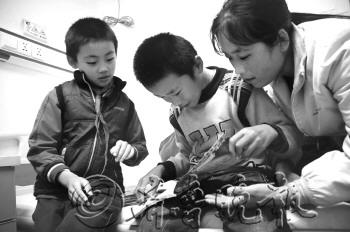 莱州市驿道镇玉兰埠村的刘学友、刘学成是对双胞胎兄弟,由于脑瘫后遗症小哥俩一直存在行走障碍,像其他同龄孩子一样自由地奔跑是他俩长久的心愿(详见本报5月30日C12-13版)。经过治疗,哥哥刘学友走姿基本得到矫正,已重返校园上课。弟弟刘学成11月1日重返烟台山医院接受康复训练。图为,小伙伴3日带着课外书来看望刘学成(中)。 本报记者 孙淑玉 李泊静 摄影报道