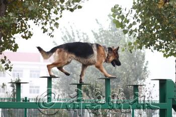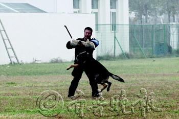 | ◥“蛋蛋”顺利在8个箱子中找出藏有毒品的那一个。 |  | ◥警犬十分灵巧地在障碍物上行走。 |  | 一米多高的障碍圈,警犬能轻易跃过。 |  | “犯罪嫌疑人”被警犬一口咬住。 |
