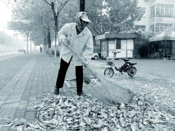 | 1日,滨州市区普降小雨,落叶增多,渤海九路保洁工人正在清扫路面。 本报记者 李运恒 通讯员 李明 王海亭 摄 |