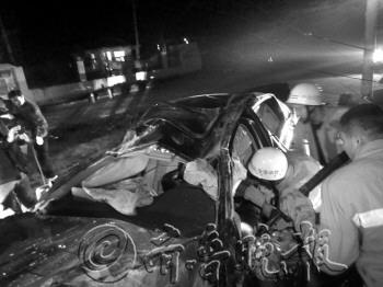 本报鄄城11月4日讯(记者 景佳 邓兴宇 通讯员 刘保哲) 3日晚,鄄巨路郑营段,一辆奥迪轿车撞上了线杆。事发后车内两人一死一伤。参加救援的消防员称,事故车内有刺鼻的酒味。 11月3日23时05分,鄄城消防大队接到报警称:鄄巨路郑营段发生车祸,有两人被困,情况紧急请求救援。接到报警后,大队迅速出动一部抢险救援车7名消防员火速赶往现场,实施救援。 他们到达现场后发现,一辆奥迪小轿车撞在路边的花坛上,花坛内电线杆粉碎性断裂,车体侧翻并严重变形,一名被困在后排座位上的人员受伤较轻,在路人帮助下已经成功爬出,另一名被困人员被死死卡在驾驶室内。 根据现场情况,消防指挥员迅速组织救援。由于车辆侧翻,驾驶室变形严重,救援空间太小,消防官兵首先利用牵引钢丝绳对该车进行牵引,逐渐将侧翻的车辆翻转过来,然后用专用救援工具对驾驶室进行扩张,再由一名消防官兵进入到驾驶室里面清理卡住被困人员腿部的汽车残骸。经过30分钟的努力,被困人员被救出,可惜的是经到场医务人员检查,被困人员已经死亡。 据参加救援的消防战士介绍,事故车内有刺鼻的酒味,交警部门初步怀疑司机涉嫌酒驾,事故原因正在进一步调查当中。消防部门也通过本报提醒广大司机朋友:谨慎驾驶,杜绝酒驾。