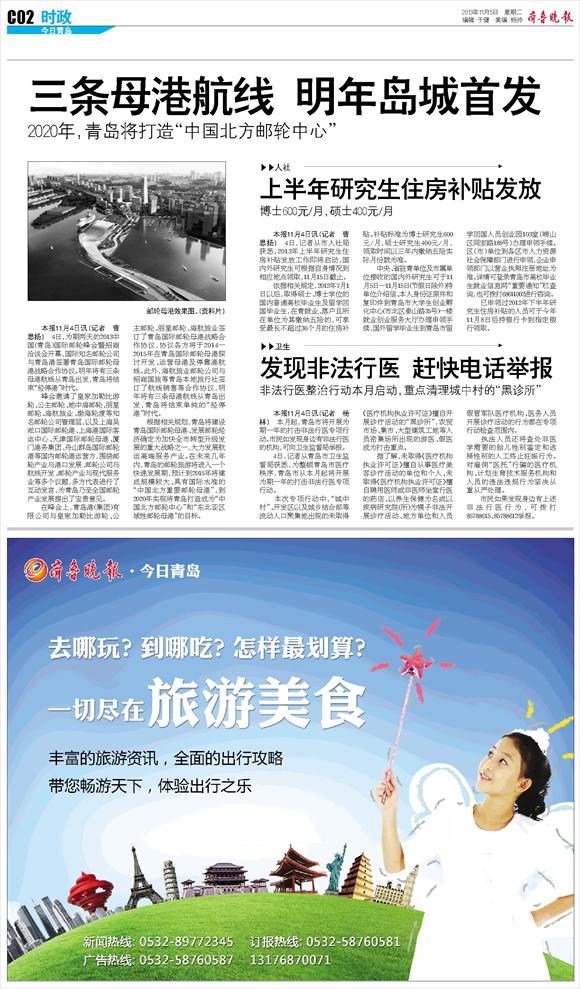 三条母港航线 明年岛城首发