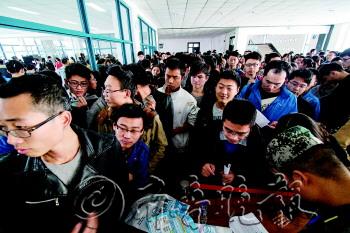 “前几个月在找工作,一直没找到合适的,10月份决定还是考研吧。”5日上午8时30分,在2014年考研确认烟台大学站现场,排起了百米长队。记者了解到,现场确认首站烟大的考生近4000人,占了全校2014届毕业生总数的一半以上。 现场排起百米长队 5日,2014年考研现场确认在烟台大学综合楼拉开序幕,上午8时30分,综合楼上排起了百米长队。“我是10月份才决定考研的。”人文学院的齐兴说,“我是新闻专业,本来想进媒体,但发现很多媒体招聘倾向于211或985高校的毕业生。”齐兴说。 记者从市招考院了解到,当天单烟台大学进行现场确认的考生就近4000人,占了全校2014届毕业生的半数以上。很多班级全班都加入到了考研队伍,“我们班基本都考了,除了几个专门考公务员的。”法学院的小宋说,班上一共52个同学,40多个考研。 多数选择“北上广” “去广州就行,学校随便挑了一个。”5日,计算机学院的小王报考的是广州工业大学。记者采访发现,和小王一样,很多学生选择考研学校时以城市为选择标准,多数选择了“北上广”。 法学院的小宋说,他们班40多个考研同学中,近20个报考的是北京的大学,“考研也是为了就业,如果还报考中等水平的院校,就走不出这个圈子了。” “我们班上41个人,近30个都考研。”化学与化工学院的王宪国报考的是兰州的一个化学研究所,他告诉记者,大部分考生是为了逃避暂时的就业压力。 保送生拦了考研路 “保送生占了一大半,让我们这些二本学校的考生怎么活?”5日上午9时,法学院的马坤一边忙着现场确认一边抱怨,她报考的山东大学共招50多人,比去年少了20多个,并且其中30多个名额已被保送生占了。 日前,山东大学2014年推免工作结束,共有1766名优秀应届本科毕业生被推荐免试攻读研究生,比2013年增加25人。据悉,山东大学应届毕业生约1万人,这意味着山大每100名学生中,就有17人有机会“保研”。像清华、北大这些名校,每年的保送生比例都在半数以上。