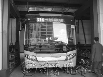 本报11月5日讯(记者 蓝娜娜 通讯员 吴爽) 6日,30部全新的电动公交车将投入运营,替换312路线和314路线部分车辆。公交巴士公司其余的70部电动公交车也正在办理相关上路手续,计划于近期上路运行。 5日,在深圳路公交停车场,30辆纯电动公交一字排开,整装待发,青岛公交集团巴士公司技术人员正对这些电动公交进行检测。根据运营计划,这30辆电动公交将于6日14时正式上路,分别更换312路线和314路线部分车辆。 青岛公交集团巴士公司技术机务科科长徐荣强介绍,巴士公司今年共计划投入100辆电动公交车,除了6日上路的30辆公交车外,其余70辆公交车正在进行挂牌等相关手续的办理,工作人员也正对车辆的电量、仪表等技术状况进行最终检测。根据计划,其余70辆电动公交车将更换370路、28路、501路和19路四条线路的部分柴油公交。“相比普通汽油、柴油公交车,电动公交除了节能低碳外,乘客乘车的舒适度将明显提高。”徐荣强说。 据了解,为方便这100辆电动公交车充电,在深圳路公交停车场对面设有一个充换电站,站内设5个工作车间,如今3个已投入正常运营。据悉,每辆电动公交车换一组电池需要8到9分钟时间,每个车间一天可以为30个车次更换电池,整个换电站每天全负荷运转可以为160辆电动公交更换电池。
