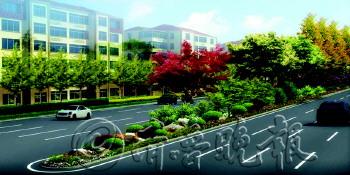 | 重庆路中分带端头效果图。 |  | 重庆路中分带效果图。 |