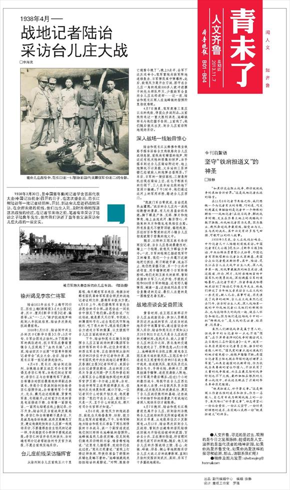 战地记者陆诒采访台儿庄大战