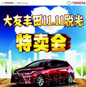 广汽丰田大友店在11月10日期间推出“大友丰田脱光特卖会双十一疯狂购车节”活动,大友店特推出光棍节丰田特价车10台,购车更可以超低价格换购“脱光”礼包,机不可失,没买车的准车主们,快来找组织吧! 活动时间:11月10日 活动内容: 1、凯美瑞2.5L特价车5台,脱光钜惠25000元 2、汉兰达2.7L特价车5台,脱光钜惠20000元 3、购车即可换购增值礼品:加“1元”换购原价180元乳胶脚垫;加“11元”换购价值380元立体脚垫;加“111元”换购价值980元发动机护板 4、当天订购任意车型砸金蛋中1111元精品超值大礼包 5、“旧换新,不费心”到店二手车免费评估,高价回收二手车,享1111元置换补贴 【汉兰达紫金版——倒计时疯狂抢购】 大友丰田现首付仅需74800元就能把汉兰达开回家,二手车置换更可尊享0首付礼遇,汉兰达紫金版倒计时限时特供。满足您开SUV梦想的唯一选择——广汽丰田汉兰达,真正的山东大汉所驾驭的SUV。