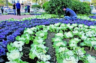 7日,在文化西路三角花园附近,园林工作人员在花池内更换冬季花卉。据工作人员介绍,三角花园附近更换的花卉以羽衣甘蓝为主,该植物耐寒性很强,良好的幼苗能耐-12℃的短时低温。