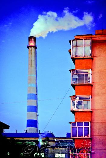 | 11日傍晚,济南明湖热电厂内的烟囱在排放废气。 本报记者 陈文进 摄 |
